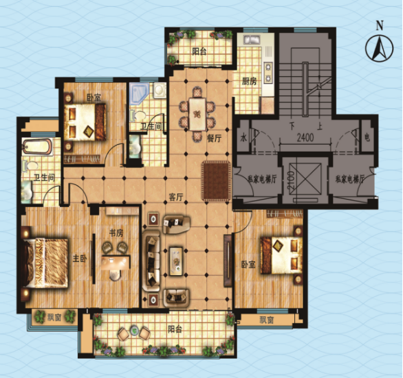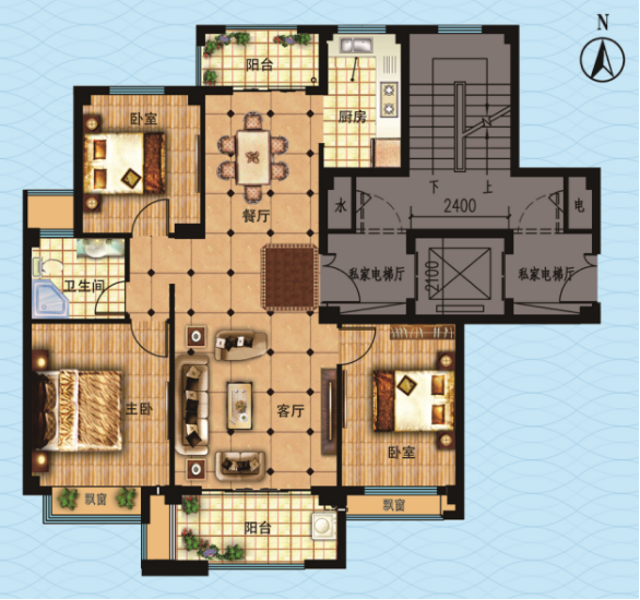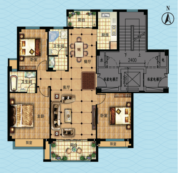 空间开阔,户型方正,动静分区,干湿分离。满足不同年龄段对居住功能的需求