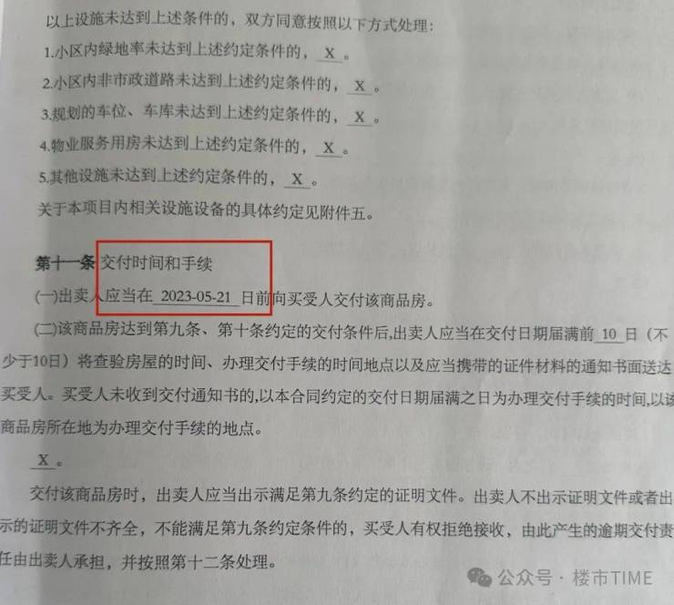 2021年5月开盘销售的绿地城际空间站7-8地块(四期四季印象),合同写着2023年5月21日前交房: